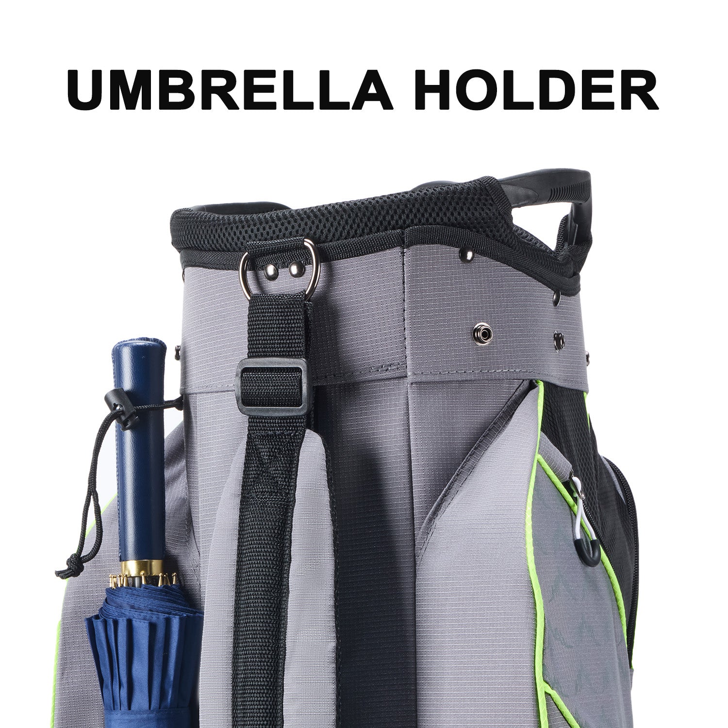 Convenient Features:Includes adjustable drawstring to securely hold an umbrella and hooks for gloves and towels, adding to the bag's overall functionality. This makes it an excellent choice among golf cart bags for men who need convenience and organization on the course
