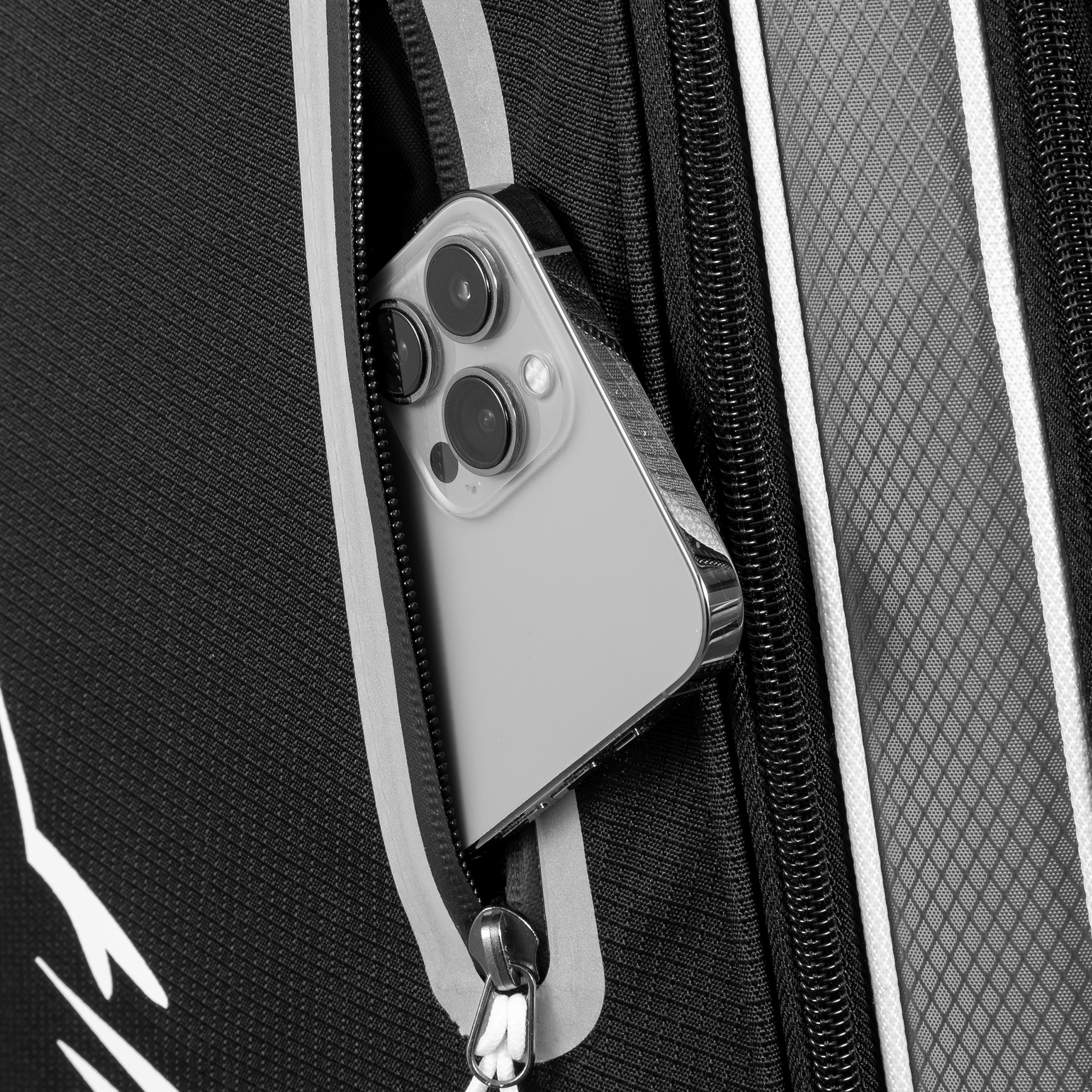 Ample Storage: With multiple pockets, including a spacious apparel pocket, cooler pocket, valuables pocket, and more, this golf cart bag offers ample storage space for your golf essentials, snacks, beverages, and personal items.