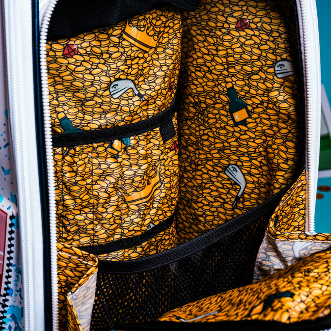 The colour navy runs throughout the bag, representing the national colours of Scotland, further emphasised by the Saltire on the tee pocket, while a blue bespeckled ‘haze’ touches various elements of the bag, depicting the harsh winds and sea that play such a big role in links golf