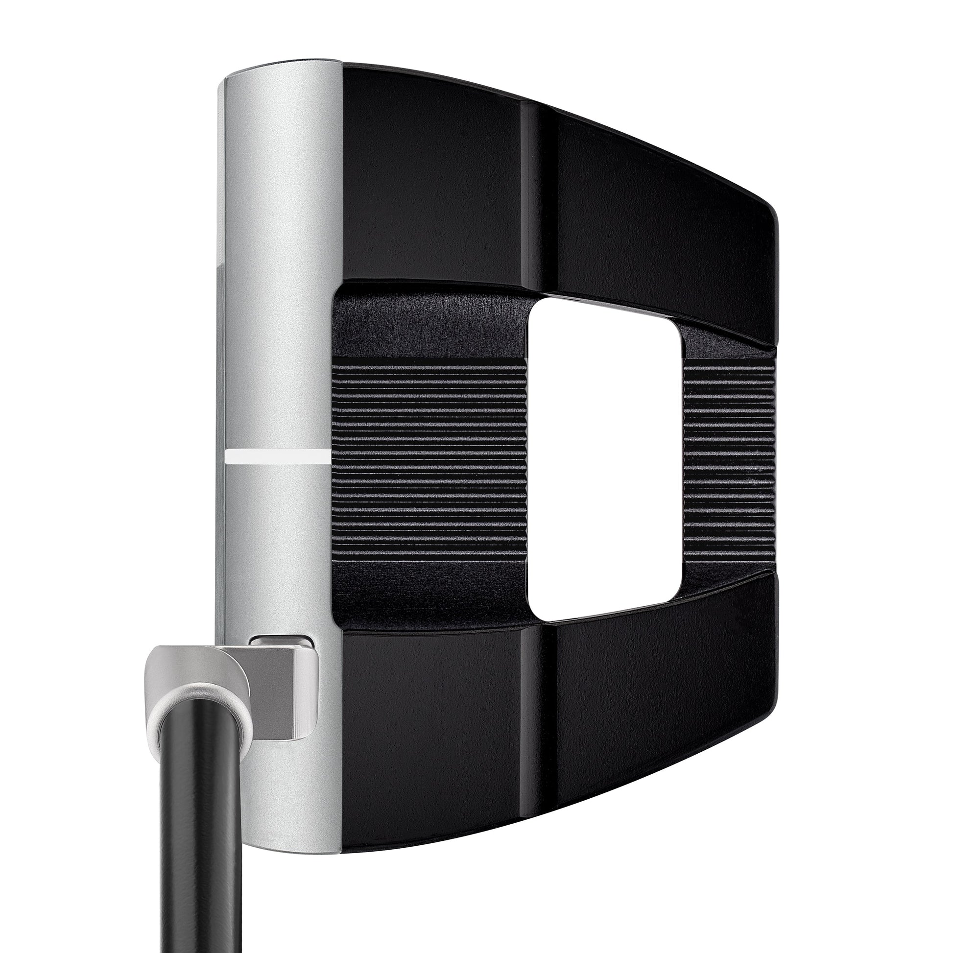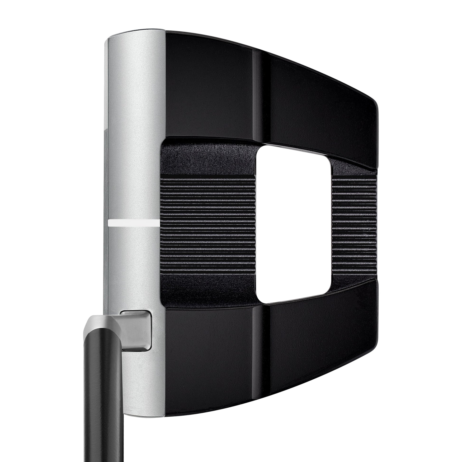 Essentially the shape of a blade putter, the stainless steel face and front section of each putter provides the feel of a blade from the hitting area while the rear aluminum chassis and four tungsten weights positioned deep and low offer the CG and MOI benefits of a mallet.