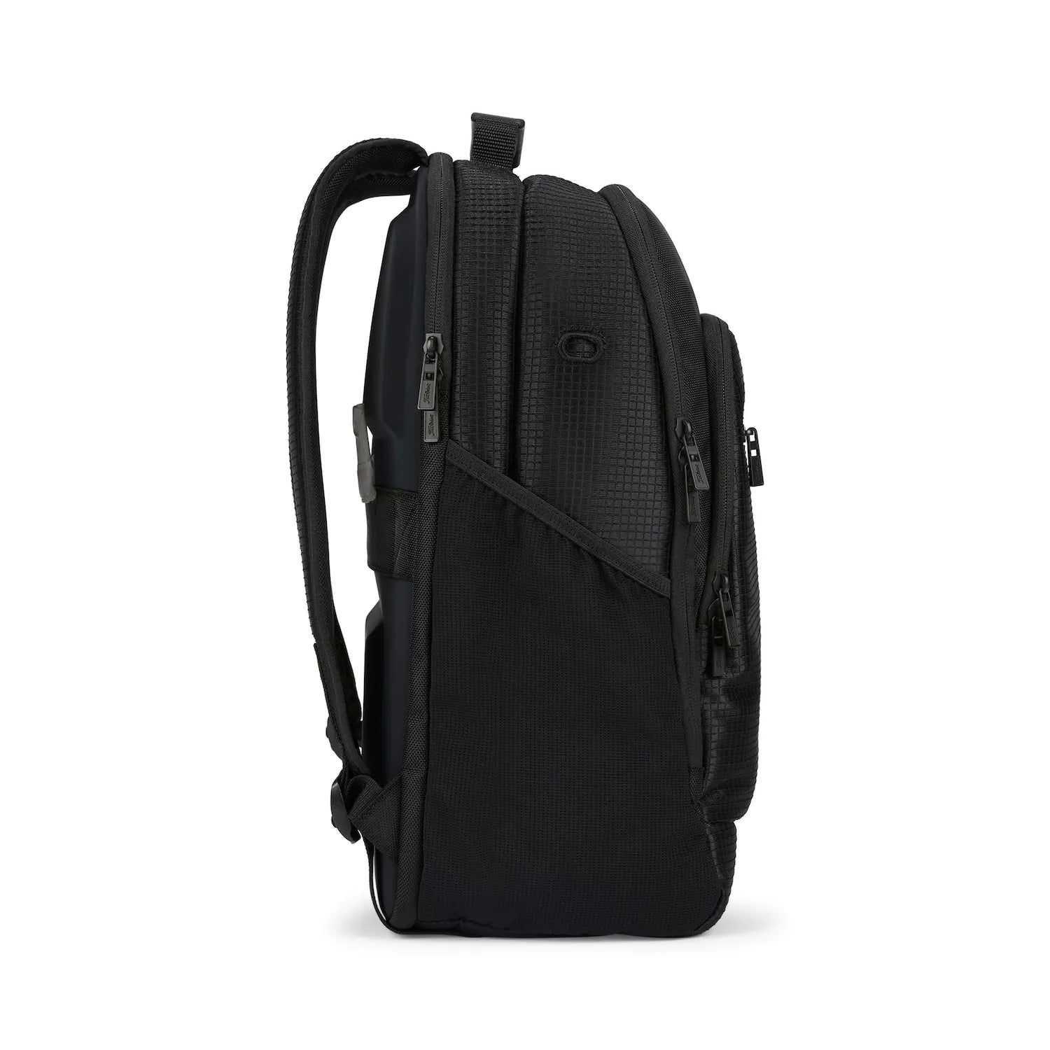 - Charcoal black, ripstop-patterned material that reflects in changing light