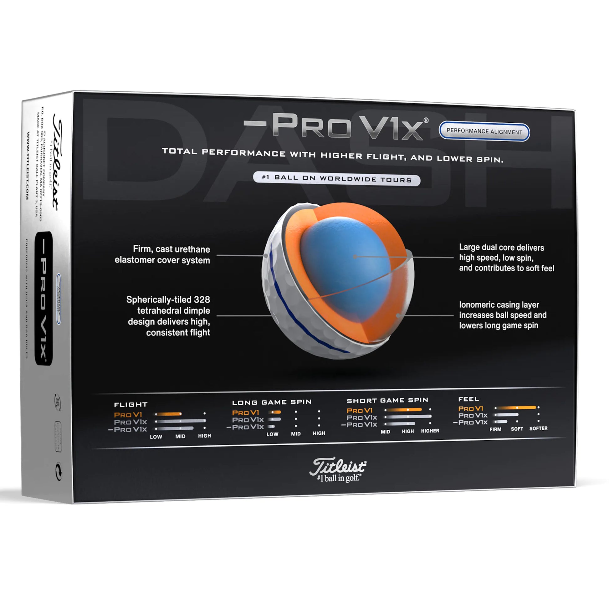 Titleist Pro V1x Left Dash AIM Performance Alignment Golf Balls - Blue